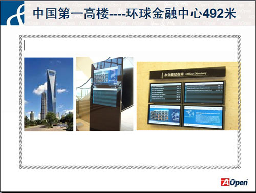 林總:十二五的發(fā)展規(guī)劃對數(shù)字標牌在國內(nèi)的發(fā)展是非常大的機會. 因為下一代信息基礎(chǔ)就是以" 云計算" 的架構(gòu)來發(fā)展. 政府以及大型組織發(fā)展"公有云", 而中小企企業(yè)與組織則會發(fā)展各種形式的"私有云" 來銜接. 除了大型服務(wù)器的"云"以外, 會有各類的"端" 的設(shè)備, 多媒體的發(fā)展會使得端的需求更加多元, 也更精致, 如藍光以及視頻聲音傳輸, 另外就是互動的各類技術(shù)蓬勃發(fā)展. AOpen 現(xiàn)在就是發(fā)展全系列的端點設(shè)備, 包括 x86 WinTel 產(chǎn)品外, Linux & Android 的SOC 平臺也會陸續(xù)推出. 除了播放機"數(shù)字引擎 Digital Engine" , 也將推出一系列中小尺寸具備多點觸摸的一體機Warm Touch, 以滿足新時代的ISV 及客戶需求, 在各行各業(yè)里, 都能合適的被使用.
