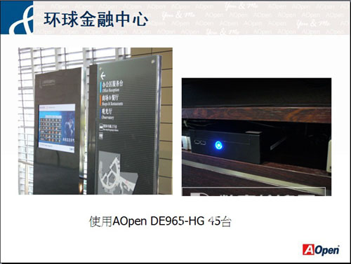 隨著IT 市場的高度競爭與瞬息萬變, 單打獨斗的小公司會相當辛苦. 建碁AOpen身為泛宏碁集團中緯創(chuàng)集團的一員, 專注在ACP的應(yīng)用領(lǐng)域 Applied Computing Platform) ,自2009開始于大中華市場開始數(shù)字標牌的業(yè)務(wù)推廣, 我們結(jié)合很多各個領(lǐng)域?qū)I(yè)的數(shù)字標牌軟件公司(ISV) 的合作, 成功的建立了市場的基礎(chǔ), 如臺灣高速鐵路, 桃園國際機場, 臺北捷運, 家樂福, 香港立法局, 赤鱲角機場, 上海地鐵, 世博各大展館, 等等. 建立起良好的口碑. 在品牌推廣方面, 我們在兩岸三地參加多場英特爾與微軟的數(shù)字標牌研討會, 2009年開始連續(xù)二年參加上海數(shù)字標牌展, 更榮獲了大會票選2010最佳媒體播放器大獎. 而在貴公司(數(shù)字標牌網(wǎng)m.fsjuntai.com)舉辦的年度票選中, 也是以最高票, 榮獲了2010全國最佳媒體播放器大獎. 這都顯示我們的努力與專業(yè)獲得了市場與媒體的一致肯定.