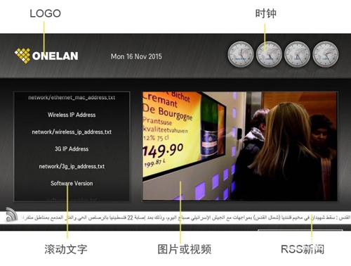 英國數(shù)字標(biāo)牌與IPTV 廠商 ONELAN 將在2016 China infocomm 展會(huì)上向來賓展示ONELAN的多媒體數(shù)字標(biāo)牌解決方案,包含4K視頻墻解決方案、房間標(biāo)牌解決方案、web OS解決方案以及互動(dòng)顯示解決方案、。
