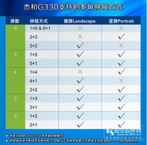 在顯示拼接上,杰和G330可支持標(biāo)準(zhǔn)的6屏拼接方式,同時(shí)向下兼容4屏或4屏以下的拼接需求。4屏拼接中單屏獨(dú)立分辨率最高可達(dá)3840x2160@60Hz,可完全滿足商顯對(duì)高保真、高清晰、色彩飽滿結(jié)實(shí)的要求。