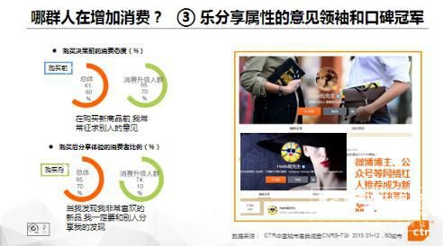 速前行的中國(guó)市場(chǎng)中,消費(fèi)升級(jí)和追求品質(zhì)逐步成為剛需,唯有優(yōu)質(zhì)的品牌方可獲得消費(fèi)者的溢價(jià)購(gòu)買(mǎi); 重視商品品質(zhì)和個(gè)性的高端人群、勇于嘗試新事物的網(wǎng)絡(luò)新經(jīng)濟(jì)人群、樂(lè)于分享屬性的意見(jiàn)領(lǐng)袖和口碑冠軍是積極推動(dòng)消費(fèi)市場(chǎng)發(fā)展的三類人群,不僅代表了消費(fèi)的潮流,也是未來(lái)消費(fèi)傾向和趨勢(shì)的引領(lǐng)者,這三類人群構(gòu)成了中國(guó)新消費(fèi)市場(chǎng)的風(fēng)向標(biāo)人群。