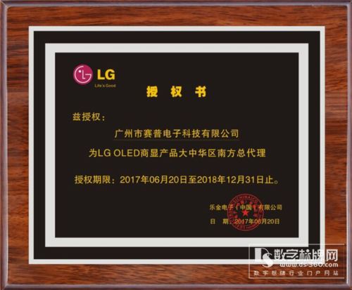 LG OLED官方授權書