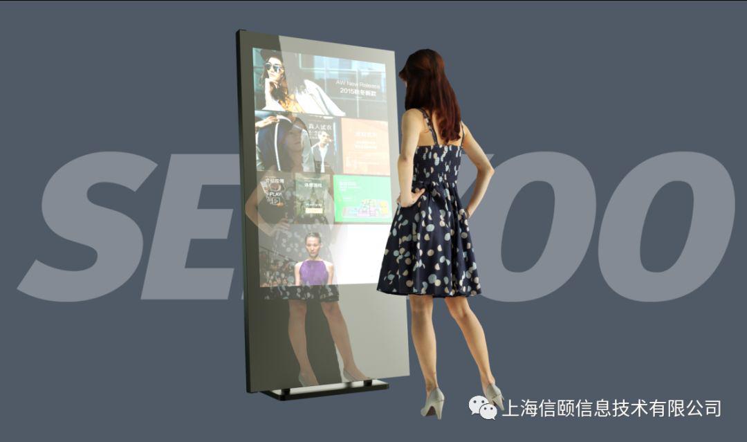 SEEYOO55寸落地式鏡面觸摸屏,結(jié)構(gòu)設(shè)計(jì)輕薄美觀,正面鏡面玻璃采用一體式貼合,純屏模式使其像一塊真實(shí)的鏡子。不管是放在衣服專賣店,還是星級(jí)酒店、博物館,都很好融入環(huán)境,增強(qiáng)場地的科技感、互動(dòng)性!