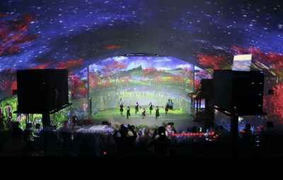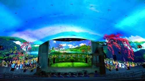 14臺投影機通過穹頂天幕投影技術(shù)、裸眼3D紗幕投影、舞臺地面投影、舞臺弧形背景投影,絢麗的燈光等設(shè)備和技術(shù)手段,展示了民族文化,推動了旅游發(fā)展。