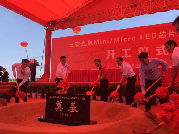 (7月29日),LED芯片龍頭企業(yè)三安光電在湖北省鄂州市葛店經濟技術開發(fā)區(qū)正式舉行Mini/Micro LED顯示芯片產業(yè)化項目開工儀式。