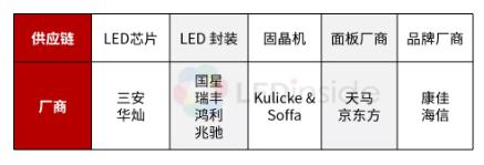 Mini LED背光為整個Mini LED TV顯示方案的核心,仍主要由目前的中大尺寸LED背光封裝廠商來完成。上述康佳、華星光電的Mini LED TV產(chǎn)品,核心部件分別由瑞豐和國星光電供應(yīng)。