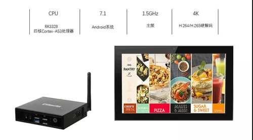 在顯示性能上,DN73提供HDMI顯示接口,集成Mali-450MP2 GPU,能夠完美兼容OpenGL ES1.1/2.0,支持4K、H.264/H.265硬解碼,支持高品質(zhì)的4K內(nèi)容輸出,是零售、餐飲、公共服務(wù)等領(lǐng)域4K媒體播放器的理想選擇。