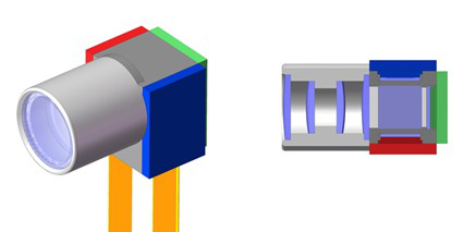 JBD的0.13英寸單色光機(jī),從左到右:切面視圖、綠色、紅色和藍(lán)色光機(jī)