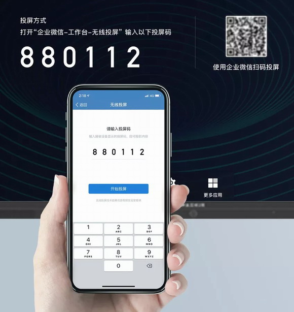 今年5月皓麗新品發(fā)布,可以實現(xiàn)手機和會議平板間的高效快速同屏。現(xiàn)在皓麗攜手企業(yè)微信,可以幫助企業(yè)微信用戶實現(xiàn)多媒體文件的快速同屏。只需要輸入投屏碼,就可以將企業(yè)微信內(nèi)的多媒體文件快速同屏分享。