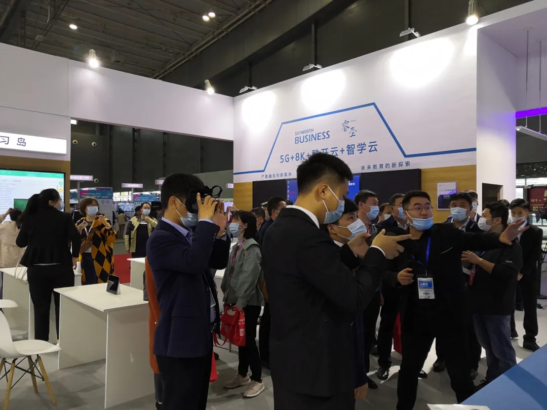 創(chuàng)維商用與睿圣聯(lián)合展區(qū)帶來完整的5G+8K+AI的解決方案,不僅吸引了眾多的參展者的駐足和觀摩,相關(guān)教育負責的領(lǐng)導們也蒞臨創(chuàng)維商用與睿圣展區(qū)指導工作,肯定創(chuàng)維商用和睿圣5G+8K領(lǐng)域的智能應(yīng)用,以及高等教育領(lǐng)域現(xiàn)代化的突出貢獻。
