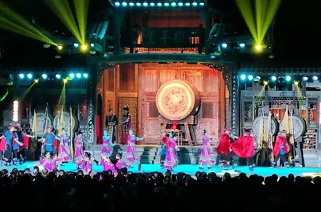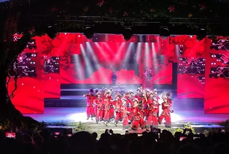 土家族史詩級演藝——原創(chuàng)大型沉浸式民俗演藝《花開芙蓉·畢茲卡的狂歡》2.0版于開幕式當天正式獻映。演藝過程中哭嫁、酉水號子、毛古斯、厄巴舞等一個個融入非遺元素的土家特色民俗節(jié)目輪番上陣,將土家族的歷史、傳說、民風民俗等極具代表性的文化符號、元素呈上舞臺,為現(xiàn)場觀眾奉獻了一場原汁原味的土家文化盛宴。
