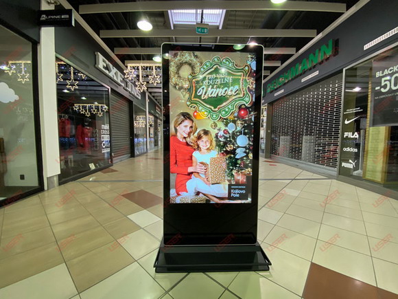 優(yōu)色專(zhuān)顯65寸雙面納米觸摸落地廣告機(jī)進(jìn)駐捷克某商場(chǎng)