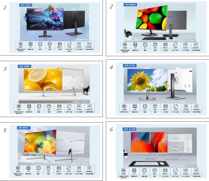 沃冠一體機(jī),S系列—商務(wù)辦公款,簡(jiǎn)約時(shí)尚小資風(fēng)格,性價(jià)比高,適合企業(yè)采購(gòu);J系列—家用辦公款,時(shí)尚輕奢體驗(yàn),辦公學(xué)習(xí)兼娛樂(lè);X系列—行政培訓(xùn)連鎖款,超低功耗,高性價(jià)比;Y系列—設(shè)計(jì)繪畫(huà)視頻款,極簡(jiǎn)設(shè)計(jì),獨(dú)顯高配;D系列—電競(jìng)游戲款,電競(jìng)大屏,炫酷外觀,加獨(dú)顯高配;G系列—軍工政企款,大氣商務(wù)款,性能更穩(wěn)定。