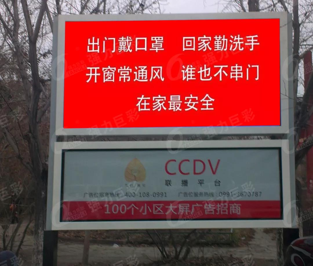 憑借現(xiàn)貨優(yōu)勢(shì)與本地化服務(wù),憑借不限尺寸按需搭配的單元板拼裝模式,強(qiáng)力巨彩LED顯示屏在防“疫”戰(zhàn)中大放異彩,在公益宣傳、監(jiān)測(cè)指揮等運(yùn)用場(chǎng)景發(fā)揮重要作用,在醫(yī)院、在政府公共管理等部門、在社區(qū)、在繁華街道,都能遇見(jiàn)強(qiáng)力巨彩LED大顯示的美麗身影。
