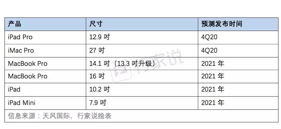 “蘋果爆料大王”天風(fēng)國際分析師郭明錤先生發(fā)布蘋果最新研究報告,稱Mini LED自4Q20起將爆發(fā)增長,預(yù)期6款產(chǎn)品將在2021年底前面市。