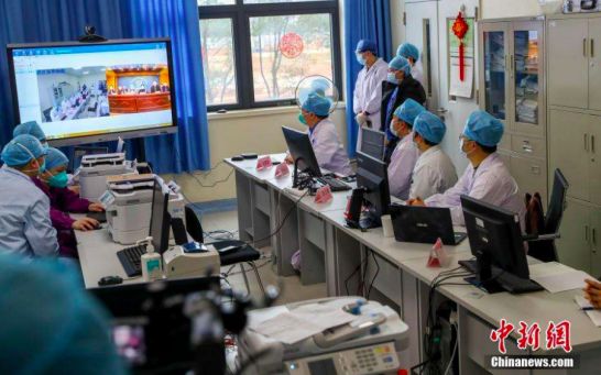 來源:人民日報,2月11日,鐘南山院士團隊同廣東醫(yī)療隊武漢前方ICU團隊進行遠程視頻會診。