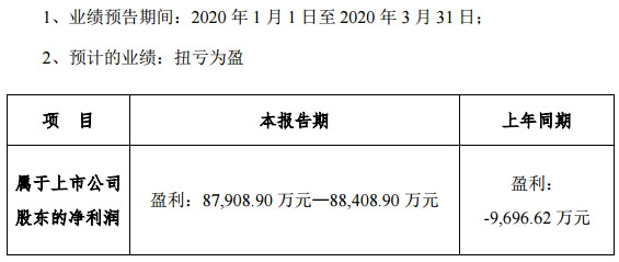 藍(lán)思科技于4月7日發(fā)布了一季度財(cái)報(bào)預(yù)告,公司預(yù)計(jì)2020年第一季度盈利87,908.90萬元-88,408.90萬元,上年同期為虧損9,696.62萬元。