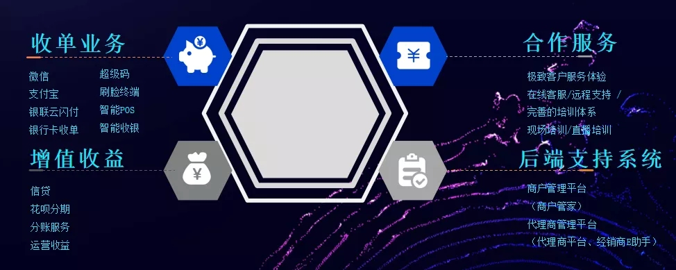 目前市場迫切以支付為入口,依托多功能的智能硬件,通過支付+的裂變效應(yīng)服務(wù)商戶數(shù)字化經(jīng)營,為商戶提供金融、營銷、分賬、店面管理、ERP等行業(yè)解決方案和增值服務(wù)。
