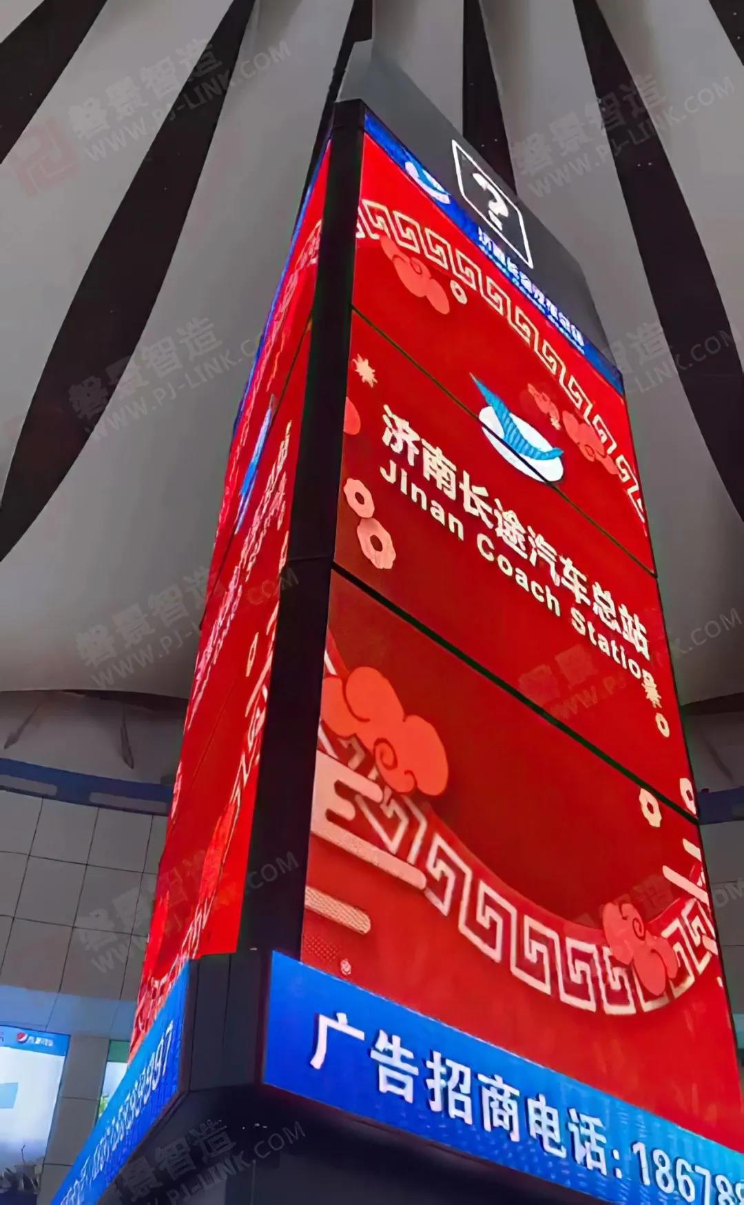 磐景智造魔方柱入駐國(guó)內(nèi)首個(gè)汽車(chē)客運(yùn)站——濟(jì)南長(zhǎng)途汽車(chē)總站。近年來(lái),總站不斷提高自身高科技含量,先后投資,進(jìn)行站內(nèi)現(xiàn)代化服務(wù)和管理升級(jí),實(shí)現(xiàn)了微機(jī)聯(lián)網(wǎng)、售票、檢票、調(diào)度、結(jié)算,現(xiàn)又引入智能創(chuàng)意新媒體設(shè)備,使得客運(yùn)總站更具科技現(xiàn)代化氣息。