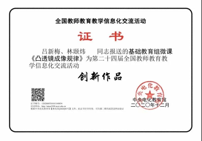 這一年,呂新梅47歲,接受采訪的前不久她憑借《凸透鏡成像規(guī)律》的課例獲得了第二十四屆全國教師教育教學(xué)信息化交流活動創(chuàng)新作品獎。