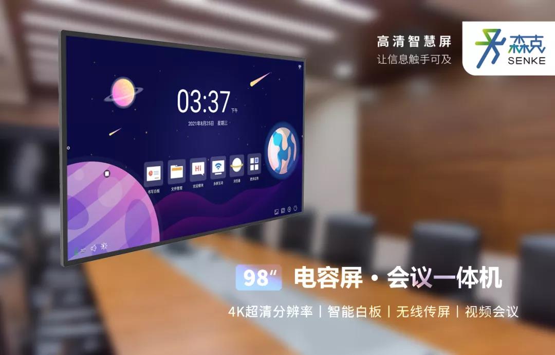 提升會議室的格調(diào)也就變得至關(guān)重要。除軟裝要遵循企業(yè)VI形象識別系統(tǒng)用色、用料、文化展示的要求外,軟實力的提升也是必不可少的一部分。傳統(tǒng)的會議室布置以多媒體設(shè)備為主。自從森克涉及會議室板塊后智慧會議系統(tǒng)應(yīng)用而生,森克結(jié)合智慧會議趨勢以及多年商顯設(shè)備研發(fā)沉淀,森克智慧會議一體機(jī)一經(jīng)上市就得到新老客戶的認(rèn)可,成為爆款熱銷產(chǎn)品。