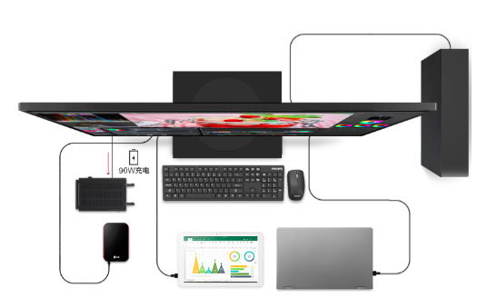 除了細(xì)膩逼真的畫質(zhì)表現(xiàn),這款顯示器還具備良好的擴(kuò)展性。在接口方面,它不僅具備主流的HDMI、DP等接口,還搭載了一個支持90W快充的全功能Type-C接口。該接口支持視頻、信號、數(shù)據(jù)、電力傳輸,使用一根Type-C線就能將筆記本電腦與顯示器相連接,搭建雙屏協(xié)同辦公,實現(xiàn)一線投屏,降低連接繁瑣,讓創(chuàng)意工作者專注于內(nèi)容本身,提升創(chuàng)作效率。