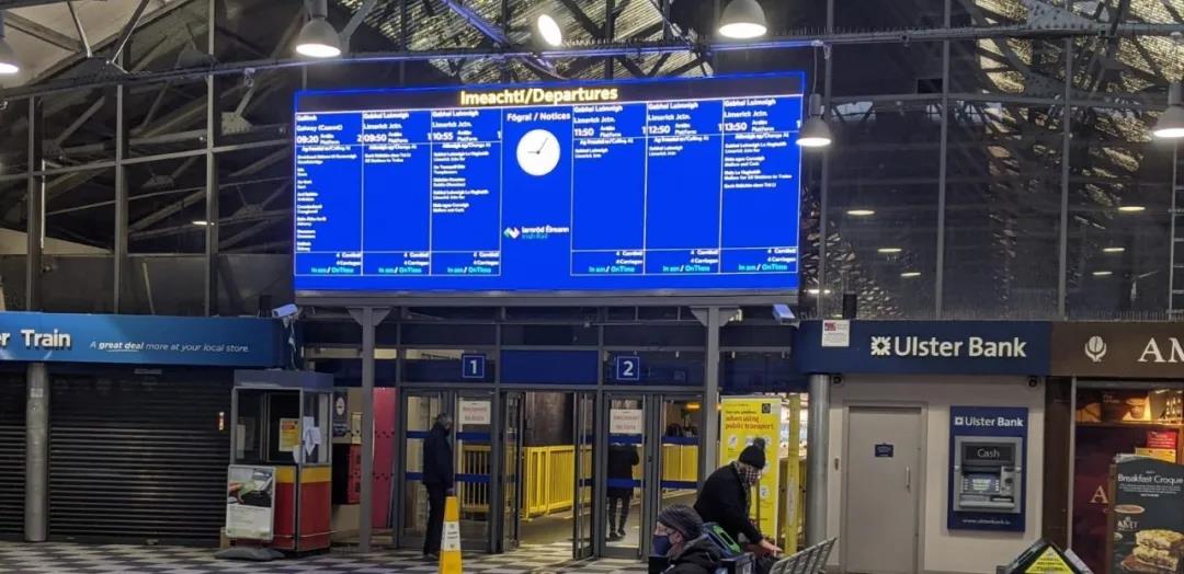 數(shù)字全矩陣技術(shù)提供了更大的靈活性,可以以兩種語言共享實(shí)時(shí)乘客信息。同時(shí)還具有突出顯示公共消息的能力,包括從COVID-19相關(guān)信息和安全消息到天氣警報(bào)和公司品牌的所有動態(tài)內(nèi)容。達(dá)科愛爾蘭客戶經(jīng)理Des Malone表示:“通過增加小間距全彩顯示屏,極大地增強(qiáng)和改善愛爾蘭車站的乘車體驗(yàn)! “我們很幸運(yùn)能夠繼續(xù)與愛爾蘭鐵路公司建立長期合作關(guān)系,這種合作關(guān)系可以追溯到1980年代中期。新的顯示屏提供更多的可能性,我們期待看到它對于來往乘客的影響力! 全新顯示屏高2.5米,寬6.5米,其顯示內(nèi)容配備高分辨率圖像和出色的對比度。達(dá)科為新的提供了設(shè)計(jì)、制造和安裝支持,順利實(shí)施整個(gè)項(xiàng)目。