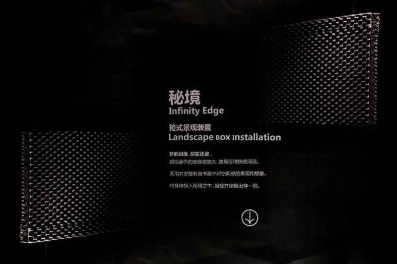 團(tuán)隊(duì)創(chuàng)意解構(gòu)國(guó)畫(huà)畫(huà)作,采用并發(fā)散嶺南書(shū)畫(huà)中對(duì)空間感的表現(xiàn)和想象,邀請(qǐng)觀眾獨(dú)自探入暗箱的洞口,在夢(mèng)的邊緣凝視畫(huà)作。裝置中暗藏著怎樣的秘境與玄機(jī)?等你前來(lái)探索……