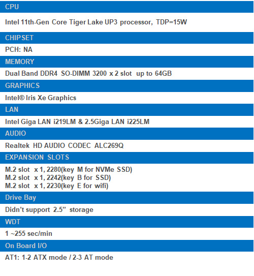 1、 采用Intel® 11th-Gen TIGER LAKE UP3低功耗移動(dòng)處理器;