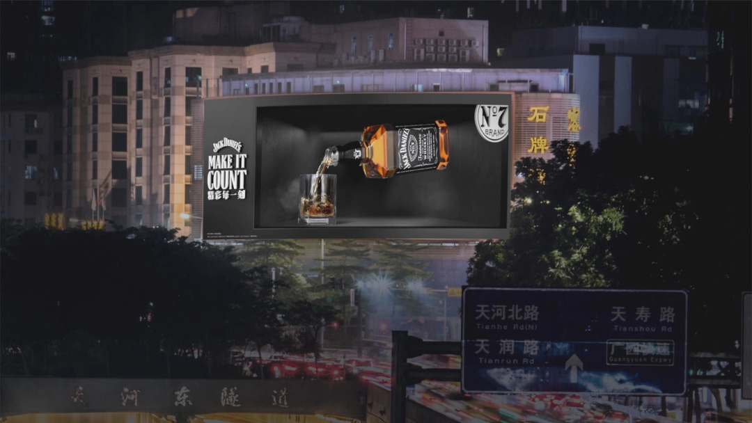 其次,對于國內(nèi)很多成熟的媒體運營商和創(chuàng)意公司來說,技術(shù)不是最難的。這種觀看局限性特別大的內(nèi)容產(chǎn)出,怎樣進行商業(yè)化應(yīng)用,怎樣和客戶的產(chǎn)品、品牌等結(jié)合起來才是特別需要思考的。所以,最難的是實現(xiàn)商業(yè)化價值的創(chuàng)意和想法,是效果達成的關(guān)鍵。讓畫面很炫的同時,和客戶的營銷需求如何契合,在戶外這樣開放的營銷場景下,我們又該如何解決受眾只有一個最佳觀看視角的限制。