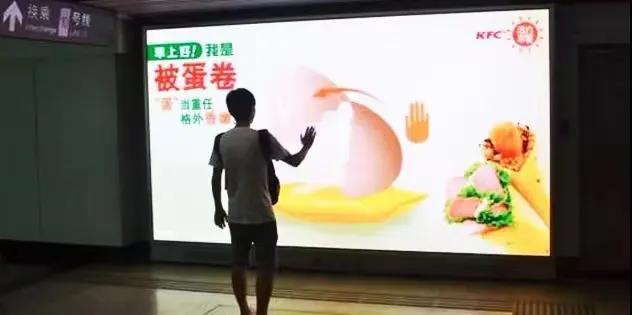 還有互動(dòng),就是利用戶外廣告與受眾產(chǎn)生互動(dòng)。媒體與消費(fèi)者有了一來(lái)二去的信息傳達(dá)與反饋,對(duì)消費(fèi)者自然會(huì)產(chǎn)生一定的記憶和影響。通過(guò)口耳相傳,口碑和關(guān)注度自然也就上升了,并可形成良性循環(huán)。例如肯德基早餐“被蛋卷”地鐵互動(dòng)。