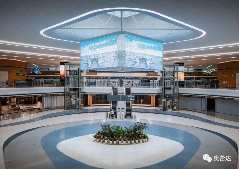 本次成都天府國際機場航站樓中庭吊裝透明屏項目,從屏體制造到安裝全程由深圳市奧蕾達科技有限公司自主研發(fā)設計。透明屏采用高強度航空鋁型材,高清顯示的流暢播放體驗、節(jié)能省電的綠色環(huán)保科技,將現(xiàn)代科技理念貫穿始終。