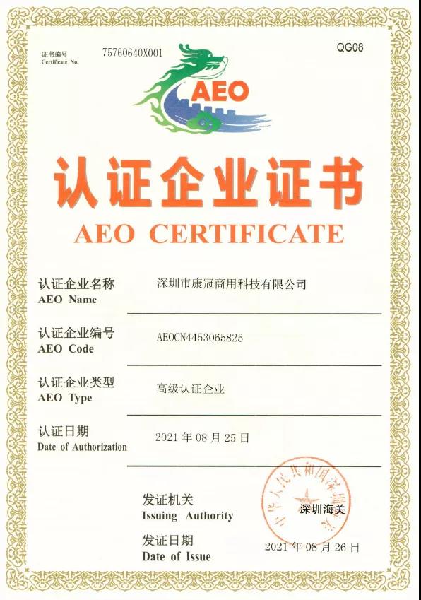 繼2020年康冠科技公司榮獲中國海關(guān)AEO 高級認證企業(yè)這一重要資質(zhì)之后,在布吉海關(guān)領(lǐng)導的持續(xù)指導幫助下,在康冠商用公司全體成員的不懈努力下,康冠商用公司也被正式認定為中國海關(guān)AEO高級認證企業(yè)。