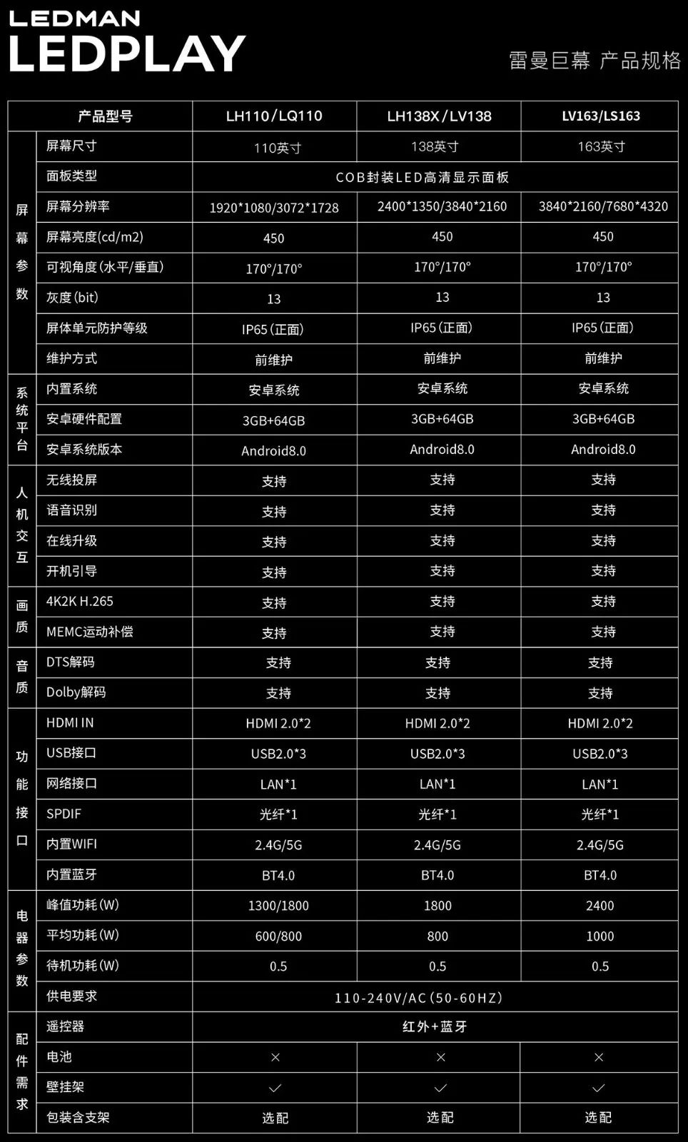 雷曼巨幕LEDPLAY多款產(chǎn)品參數(shù)