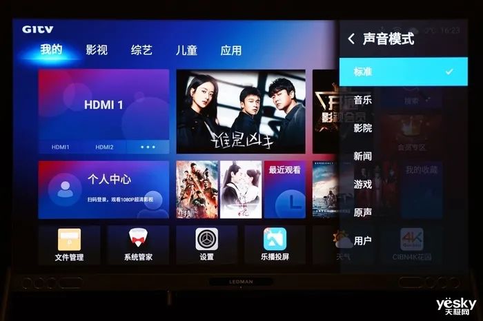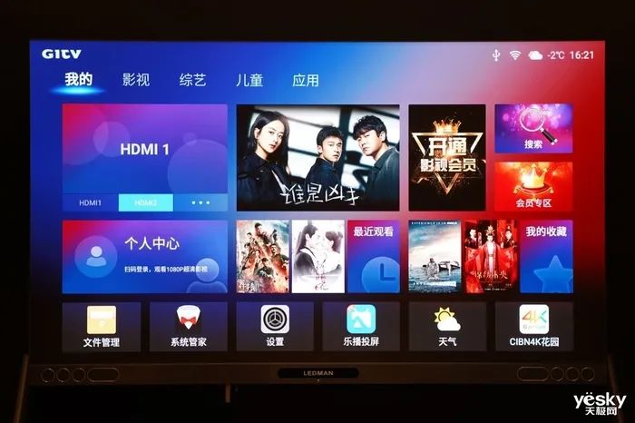 雷曼巨幕LEDPLAY的主頁欄目有“我的”、“影視”、“綜藝”、“兒童”、“應(yīng)用”等五項,其影視資源采用愛奇藝平臺。