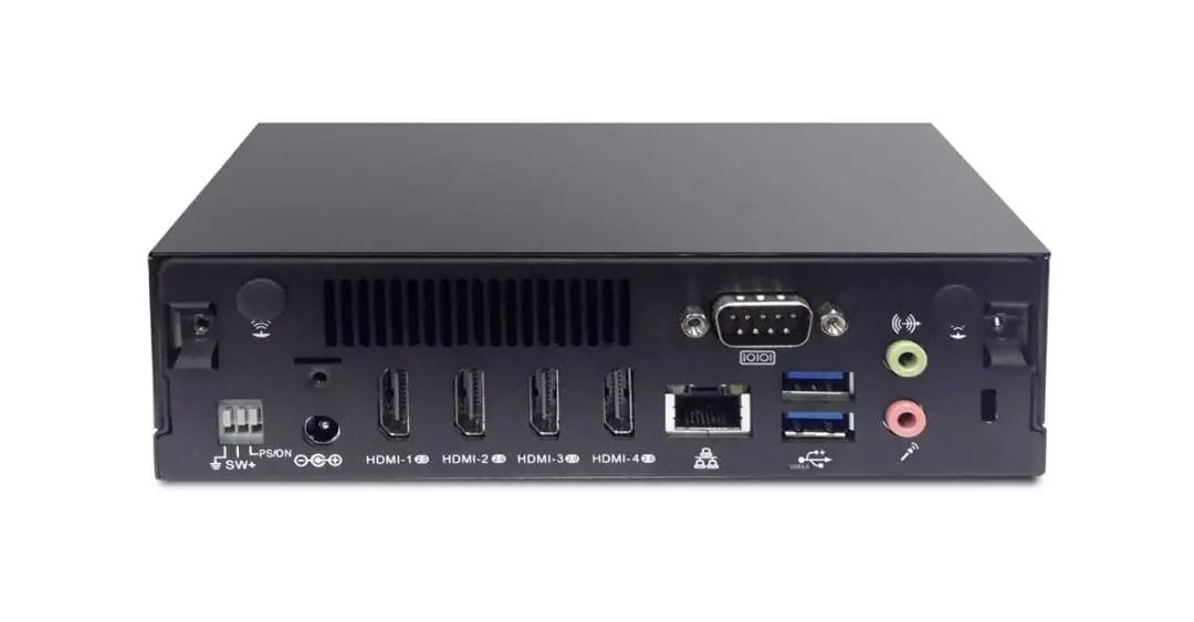 再來引薦下建碁AOPEN拼接類“招牌”機型--DE6340,DE6340為重視高畫質(zhì)影音視覺的多媒體電視墻應(yīng)用而設(shè)計,是新一代高效能的小型化播放機。擁有令人驚艷的視覺效果及超群的圖形運算及輸出能力。DE6340采用AMD V1000 SoC APU確保流暢的播放,同時支持4個UHD(4k2k)獨立顯示,適用不同類型電視墻如電子菜單及一般高畫質(zhì)需求的數(shù)位看板應(yīng)用。