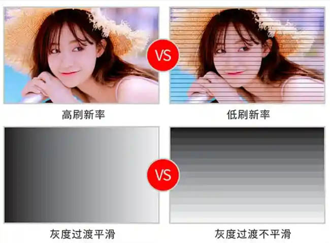 市場上部分3840Hz的LED貼膜屏,畫面亮度過渡會(huì)出現(xiàn)較明顯的顯示疊影,刷新率調(diào)到3840Hz的時(shí)候,還會(huì)導(dǎo)致顯示丟幀屏閃現(xiàn)象。所以“真高刷新率”就是保證顯示效果正常的基礎(chǔ)上,刷新率達(dá)到3840Hz。