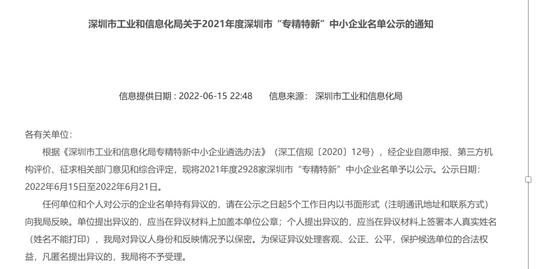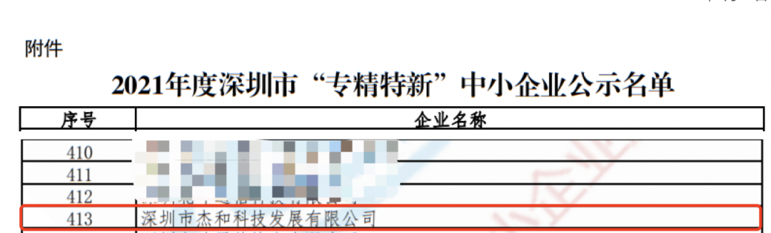 2022年6月15日,深圳市工業(yè)和信息化局公示了《2021年度深圳市“專精特新“中小企業(yè)名單》,深圳市杰和科技發(fā)展有限公司(以下簡稱“杰和科技”)憑借技術(shù)研發(fā)和產(chǎn)品創(chuàng)新方面的硬核實力,成功上榜!