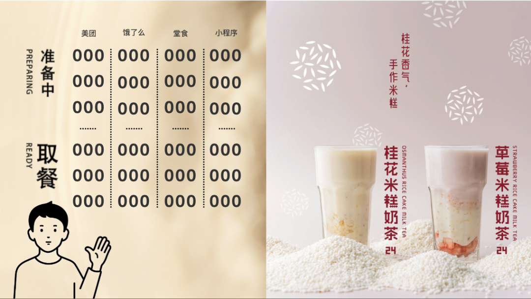 除此之外,叫號還有多種展示方式:叫號+海報、叫號+掃碼點單小程序、叫號+公眾號二維碼等……