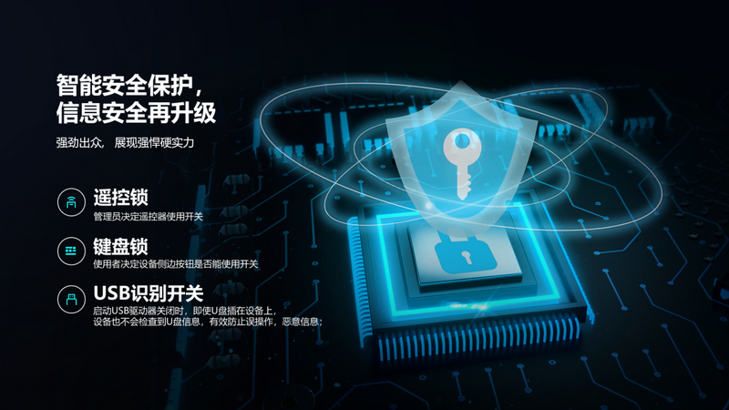 信息安全再升級(jí):遙控鎖、鍵盤(pán)鎖、USB識(shí)別開(kāi)關(guān)由運(yùn)維管理者統(tǒng)一操作,有效防止信息泄露和惡意入侵。