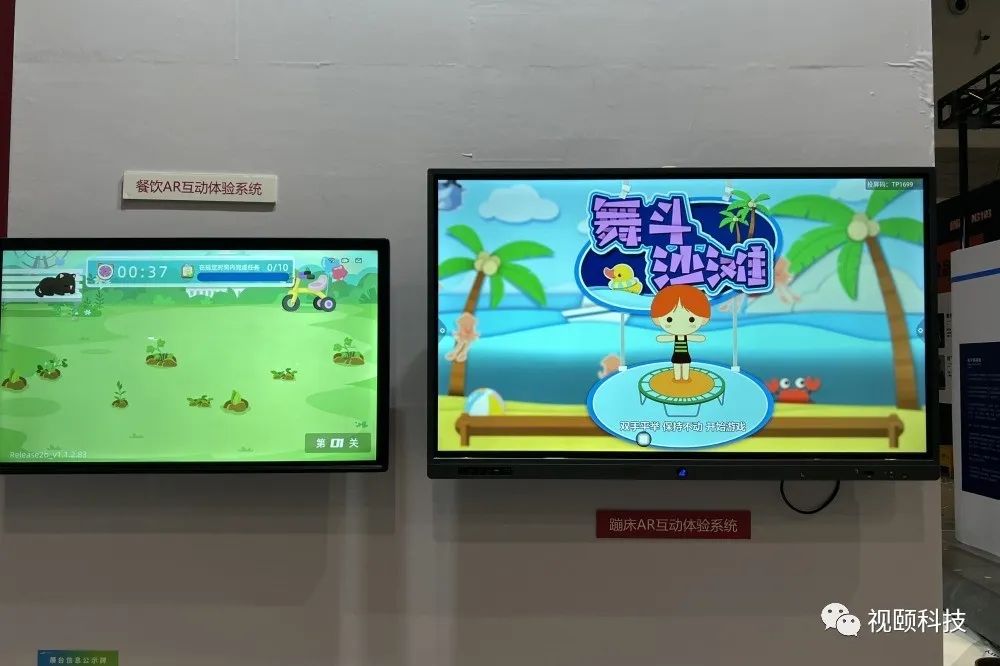 高檔餐飲店休閑娛樂(lè)系統(tǒng)。視頤攜帶了蹦床Leah互動(dòng)系統(tǒng)、大屏觸摸娛樂(lè)系統(tǒng)兩大類(lèi)產(chǎn)品。可以滿(mǎn)足超大型餐飲連鎖,店面兒童娛樂(lè),休閑益智等功能需求。目前,該方案已經(jīng)在國(guó)內(nèi)很多旗艦餐飲店實(shí)施,并獲得客戶(hù)廣泛認(rèn)可。展會(huì)3天,體驗(yàn)者絡(luò)繹不絕,甚至還有俄羅斯、泰國(guó)等國(guó)外友人。