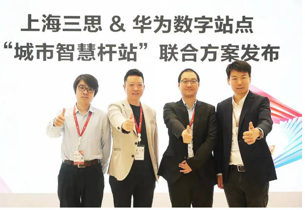 上海三思作為華為多鏈路、多領(lǐng)域、多場(chǎng)景深度合作的優(yōu)質(zhì)合作伙伴,攜新型城市智慧桿站及解決方案亮相大會(huì),齊心攜手華為構(gòu)建萬物互聯(lián)的智能世界。