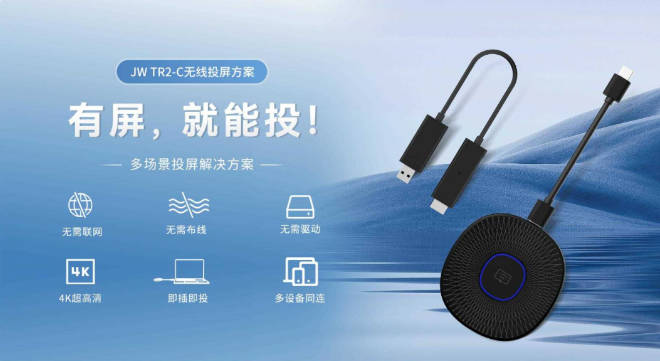 無論是在企業(yè)會議室、教育培訓場所還是家庭娛樂環(huán)境,JW TR2-C無線投屏方案都能提供出色的無線投屏功能。用戶可以通過簡單的操作將移動設(shè)備、電腦或其他支持投屏功能的設(shè)備的內(nèi)容無線傳輸?shù)斤@示屏上,實現(xiàn)實時的內(nèi)容共享和展示。