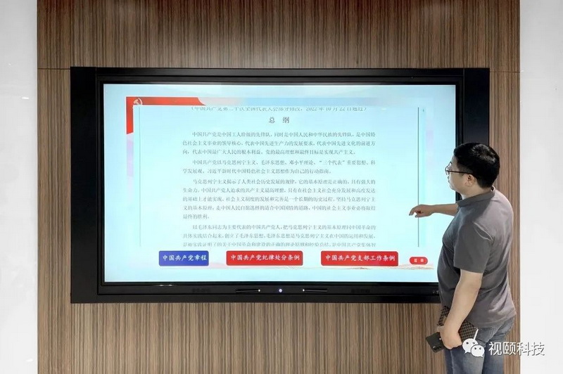 98英寸觸摸一體機(jī)搭載了視頤黨建展示墻軟件,具有智慧黨建查詢(xún)軟件,智慧黨建簽名軟件,智慧黨建答題軟件,智慧黨建翻書(shū)軟件,智慧拍照軟件,智慧黨建時(shí)間軸軟件,智慧黨建大屏平板互動(dòng)軟件等模塊。