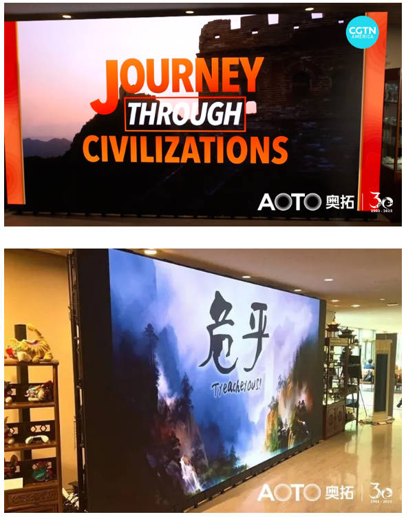 當?shù)貢r間6月29日,由奧拓電子助力的中央廣播電視總臺“‘何以文明’全球巡展·聯(lián)合國特展”開幕式在紐約聯(lián)合國總部舉行,奧拓電子RM系列LED顯示屏登上次日的CCTV新聞。聯(lián)合國副秘書長莫拉蒂諾斯等多名政要出席活動并發(fā)表講話,該展覽持續(xù)到7月7日,吸引了來自各國近萬人參觀。
