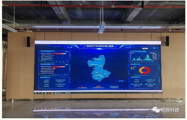 此次,視頤采用的是P1.86小間距,4K輸出技術(shù),畫面高清亮麗。該大屏的面積為13.82平方米,廣西農(nóng)村產(chǎn)權(quán)流轉(zhuǎn)交易大數(shù)據(jù)在大屏上一目了然。該項(xiàng)目最大亮點(diǎn)是采用了COB LED,它是led小間距的進(jìn)化版,在顯示和防護(hù)上都比led小間距更有優(yōu)勢(shì),其主要體現(xiàn)在——