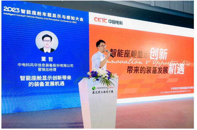 2023年7月11日,2023智能座艙車載顯示與感知大會在上海國家會展中心盛大開幕。中電科風華公司受邀參加,發(fā)表了題為《智能座艙顯示創(chuàng)新帶來的裝備發(fā)展機遇》主題演講,與行業(yè)專家共同探討智能座艙車載顯示市場快速發(fā)展的機遇與挑戰(zhàn)。