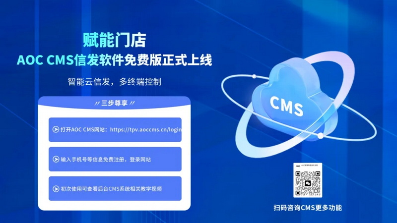 AOC自研商用顯示大屏管理軟體——Cloud CMS(智能云端信息發(fā)布系統(tǒng))問世的數(shù)年間,已憑借著強(qiáng)大的顯示大屏后臺(tái)管控能力,為零售、政企、醫(yī)療、交融等各行業(yè)1000+企業(yè)提供有力助益!CMS信發(fā)系統(tǒng)功能強(qiáng)大,應(yīng)用靈活,通過該系統(tǒng)可以快速制作展示內(nèi)容,制訂內(nèi)容播放計(jì)劃,隨時(shí)傳遞到分布在任意地點(diǎn)的硬件終端,并隨時(shí)能控制任意終端播放的內(nèi)容和播放形式。