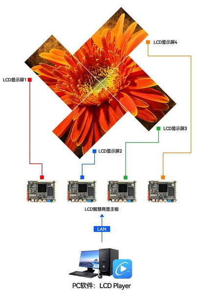 夢(mèng)派LCD異形拼接方案以L(fǎng)CD Player軟件為核心,搭配LCD智慧商顯主板,實(shí)現(xiàn)對(duì)LCD顯示屏的智能配置與靈活創(chuàng)意,夢(mèng)派LCD異形拼接方案最大拼接數(shù)量支持400臺(tái)顯示設(shè)備。